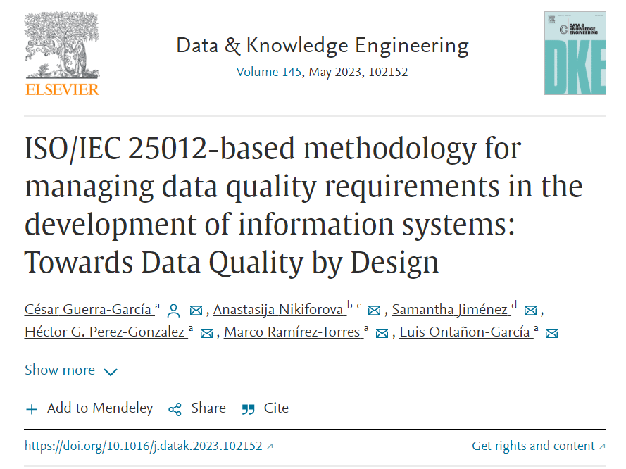 One thought on “Towards data quality by design – ISO/IEC 25012-based methodology for managing DQ requirements in the development of IS – one of the most downloaded article of DKE from July 2023”