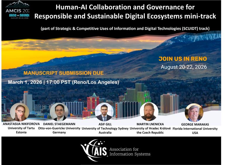 - AMCIS2026 –Human-AI Collaboration and Governance for Responsible and Sustainable Digital Ecosystems, Nevada, US, August 2026