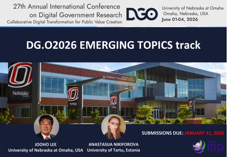 - DGO2026 – 26th Annual International Conference on Digital Government Research (dg.o) “Accountable and Inclusive Digital Ecosystems for Public Value Creation” track, June 2026
