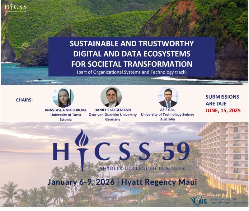 - HICSS2026 (Sustainable and trustworthy digital and data ecosystems for societal transformation), Hawaii, US, January 2026