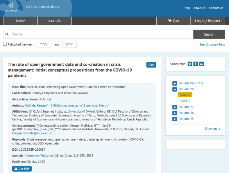 Ultimately, this paper aims to be of use both to practitioners who may be directly involved in the management of a crisis or in the management of an OGD initiative, for academics interested in studying the impacts of OGD or crisis management, and also for citizens to see how they can play an active role in co-creation processes and thereby create value.