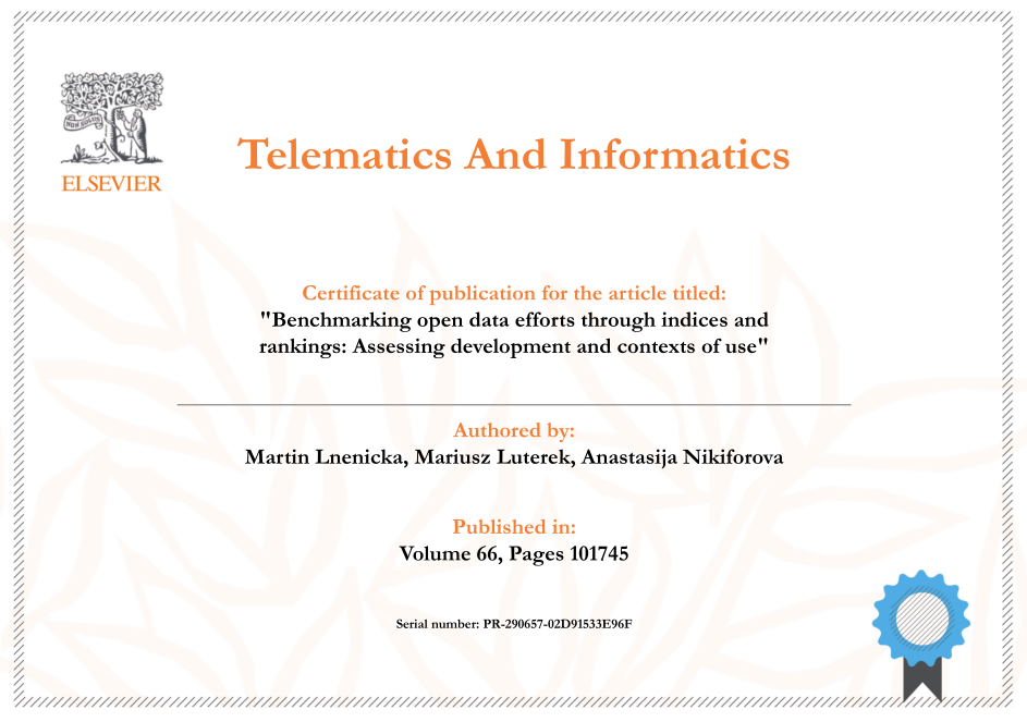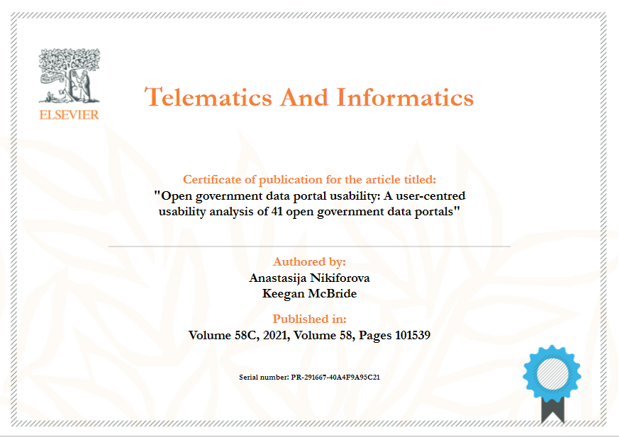 - 16 papers, including one chapter (some of them will be officially published in 2022), 6 conference papers, 9 journal articles, including 6 articles in Q1 journals. Some of these articles have been recommended by international organizations, including the world’s largest and most significant open data portal data.europa.eu, the Open Data Daily (PSI Monitor), World Health Organization, Europe PMC and FreeMedArt etc.;