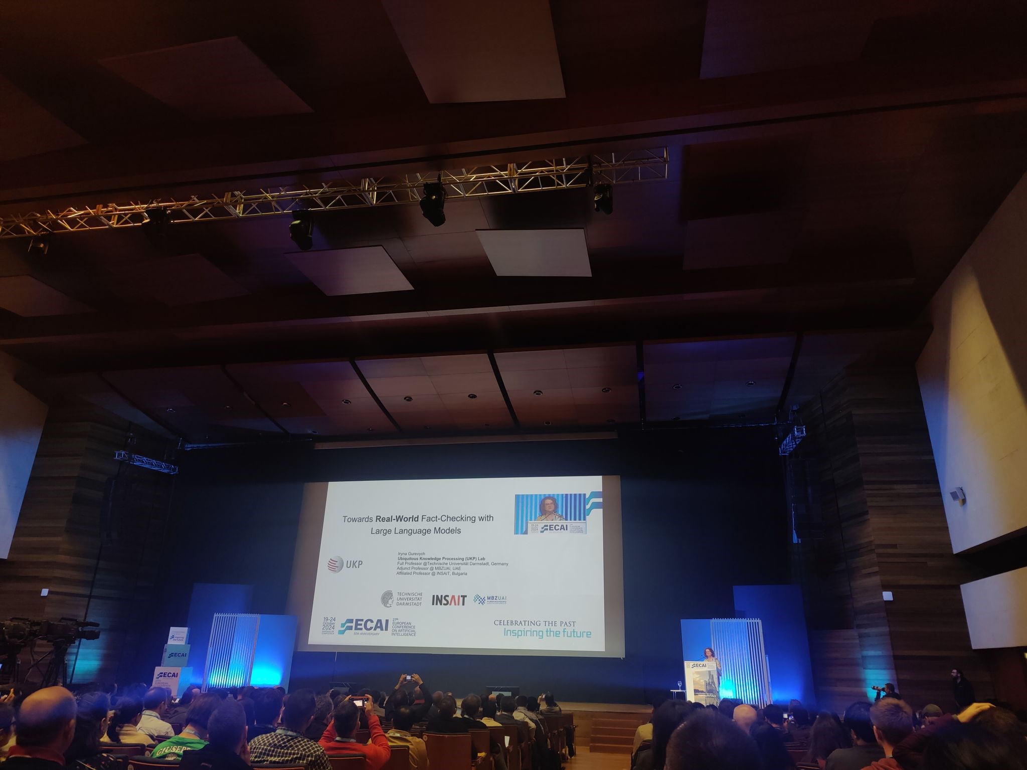 “Towards Real-World Fact-Checking with Large Language Models” keynote talk by Iryna Gurevych, (Technische Universität Darmstadt), reflecting on advancements in using language models for verifying information in real time;