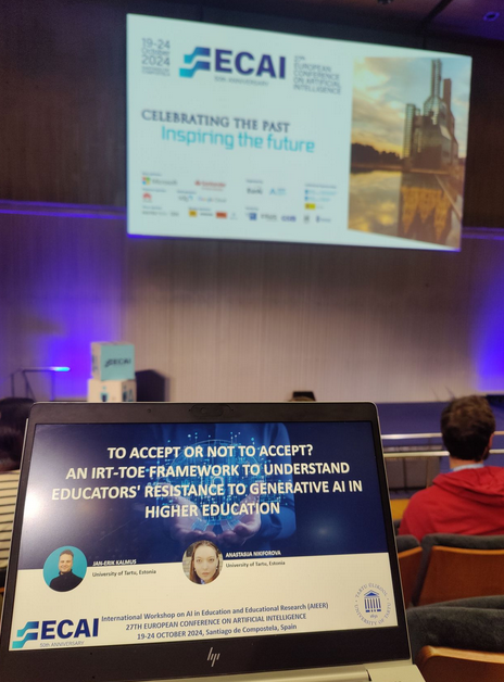 And as a follow-up to this, the paper of my former master student Jan-Erik Kalmus – “Generative AI adoption in higher education: exploring educator resistance in Estonian universities” was presented. In this study, Jan-Erik examined educator resistance to student use of GenAI in higher education focusing on Estonia, known as a “digital nation”, employing a theoretical model informed by the Innovation Resistance Theory (IRT) that we introduced in previous study presented at ECAI (on which I posted earlier).